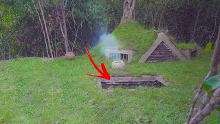 Building Complete And Warm Survival Shelter Bushcraft Earth Hut Grass Roof Fireplace With Clay Youtube